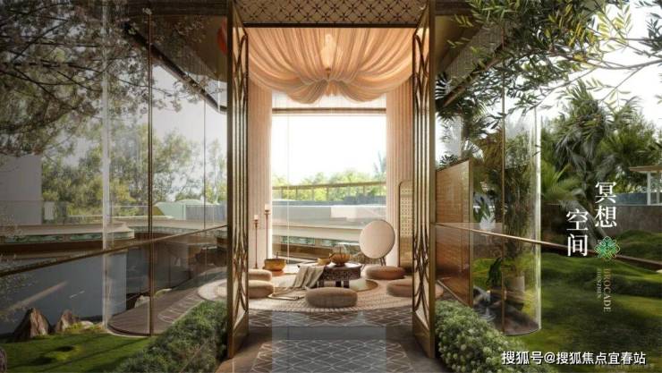 奢阔尺度的冥想空间、能量运动舱,配置巨幅落地玻璃,不仅引光入室,更将繁花绿意与下沉庭院的水景尽收眼底,实现建筑、自然与艺术的无声交融。