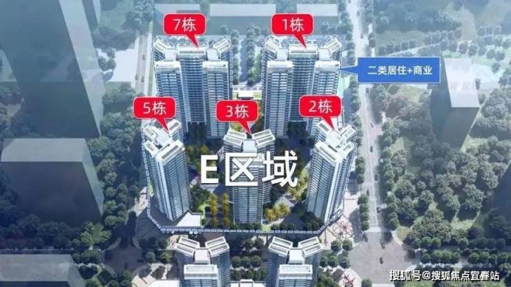 楼栋状况:E地块1栋、7栋均为26层,分为两个单元;2栋、3栋同样为26层;5栋为25层