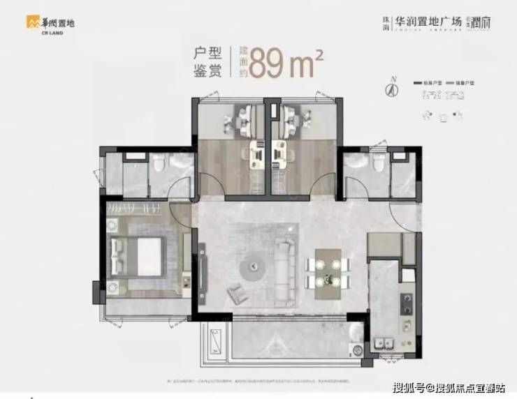 在售面积:79m²(3室2厅1卫)、89m²(3室2厅2卫竖厅)、89m²(3室2厅2卫横厅)、105m²(4室2厅2卫)