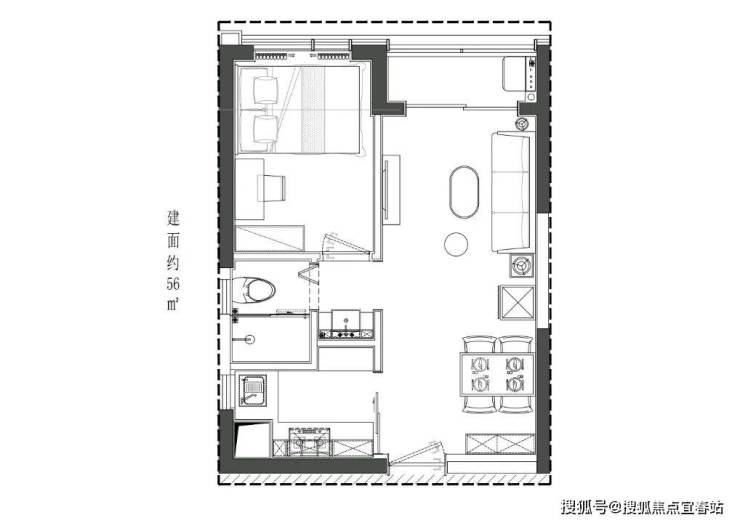 56平1房1厅房户型图