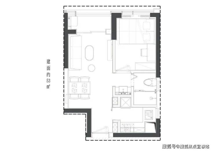 53平1房1厅房户型图