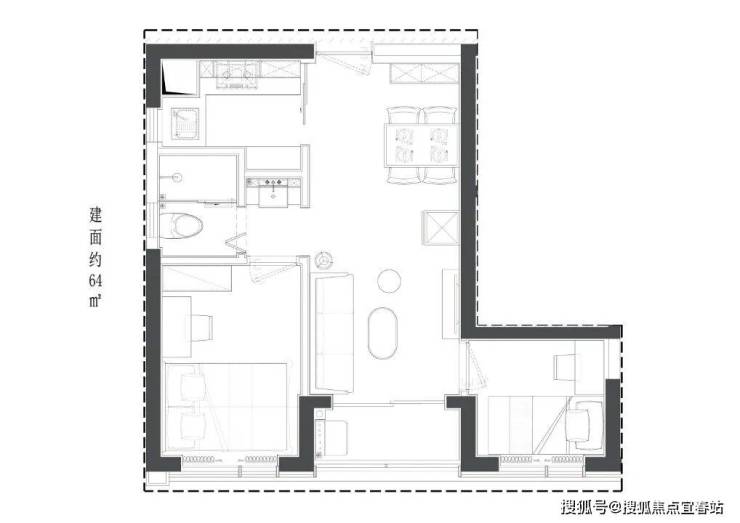 64平2房户型图