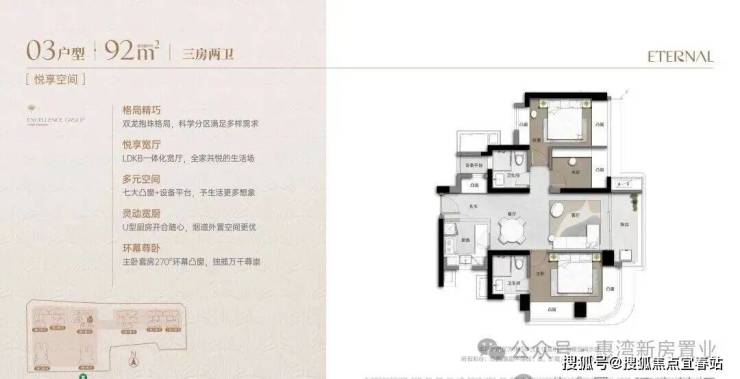 ·告别传统户型设计不合理,造成一定程度的空间浪费;全系无暗卫暗厨,让阳光铺满每个角落!
