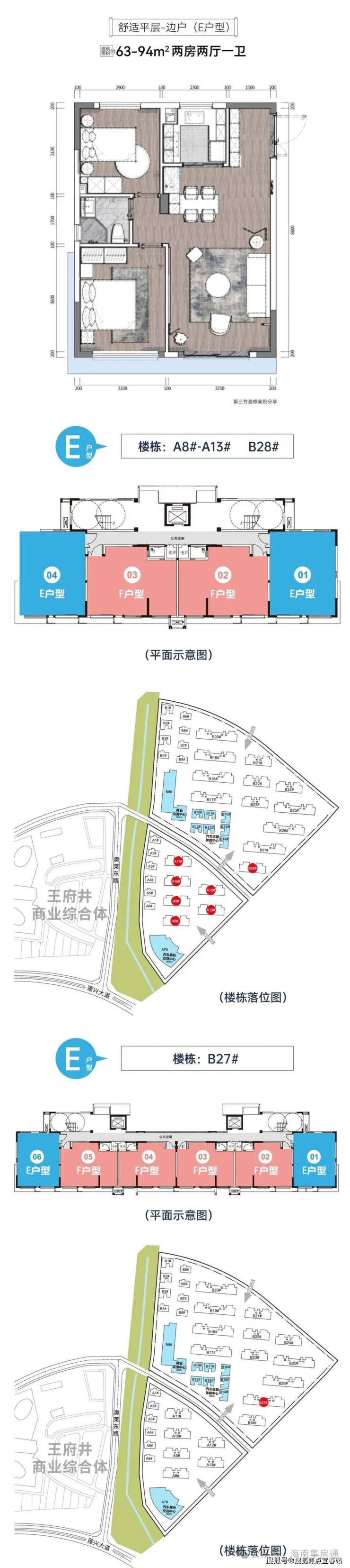 平层:63-95㎡ 两房两厅一卫 总价:110-120万