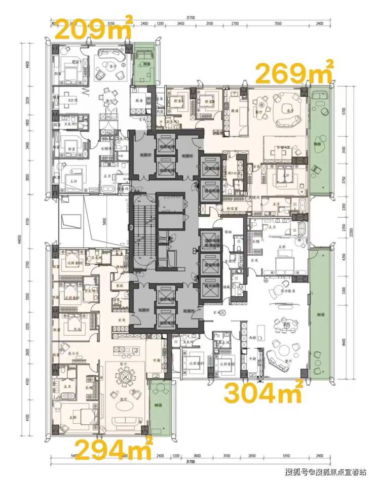• 超高区(58层起,200米以上):约500-700㎡顶级大平层