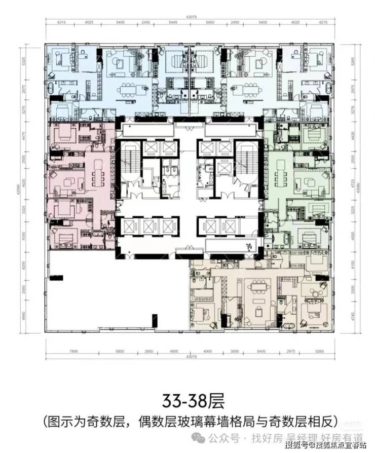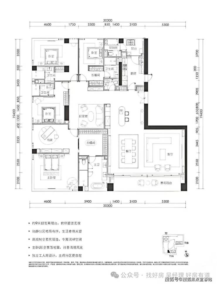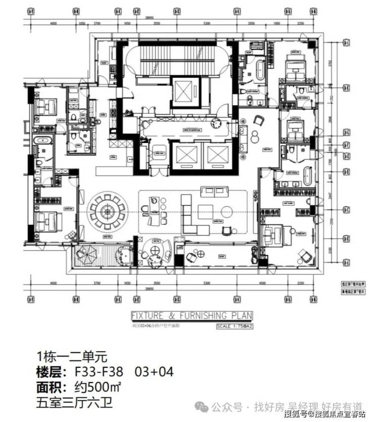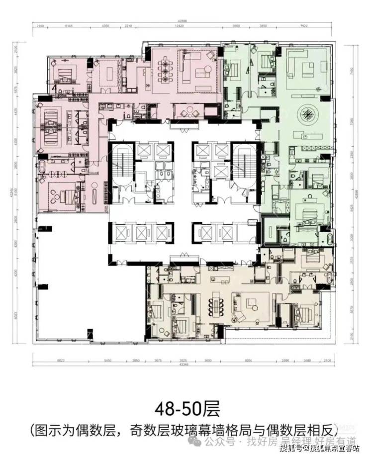 ★468㎡五房三厅六卫:位于1栋一、二单元高区33-38层,一层一户,仅6席。五房四套房设计,主卧L形全景落地窗,270°最佳观海位,南向超大三厅一体,动静分区布局有序。