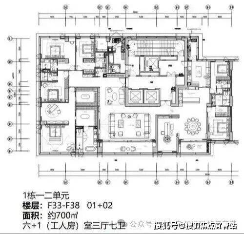 ★500-700㎡超大户型:700㎡户型位于1栋一、二单元高区33-38层,由01+02户型组成。户型宽敞奢华,可尽享海景与城市景观,为高端客户提供极致居住体验。