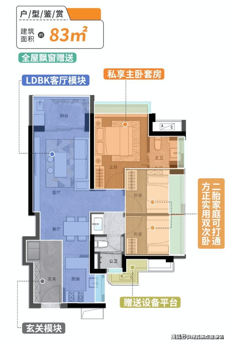 除了约83㎡、约98㎡两大主力户型,珺奕府还推出约89㎡进阶三房两卫与约114㎡全能四房,覆盖不同家庭需求: