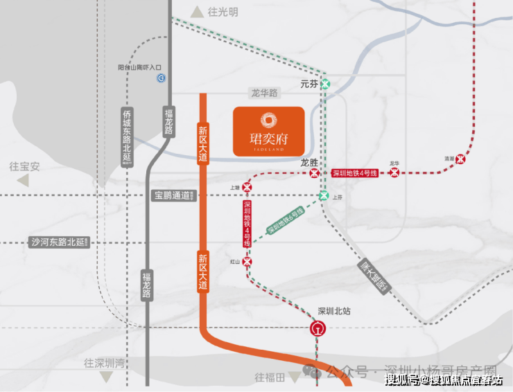 多维交通:步行300米即达地铁4号线龙胜站B出口,约800米可达6号线元芬地铁站,可便捷直达深圳北站;规划中的深大城际“龙胜站”落地后,3站即可抵达宝安机场东,多维路网畅达全城。