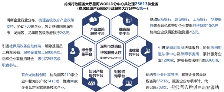 现在,产业园区的发展已经从增量时代进入存量时代,从粗放式发展进入精细化发展阶段。竞争也不再仅仅是“空间租赁”,而是转向“价值创造”。园区运营服务的重要性不言而喻。比如深圳·星河WORLD,联合当地政府共建政务服务大厅,打造“一中心六平台”,为企业提供全方位的服务,还设立了“1234”响应机制,企业服务满意度高达99%。这种精细化的运营服务不仅能提升企业的盈利水平,还能增强入驻企业的黏性和合作深度,最终推动运营商从传统物业租赁向产业服务升级转型。