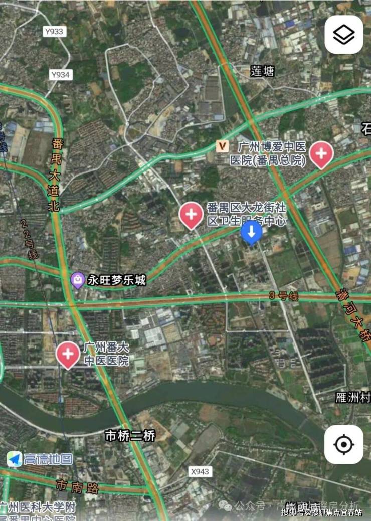 项目距离地铁3号线东延段傍江站直线约500米,步行要900米左右,一站即达番禺广场站。
