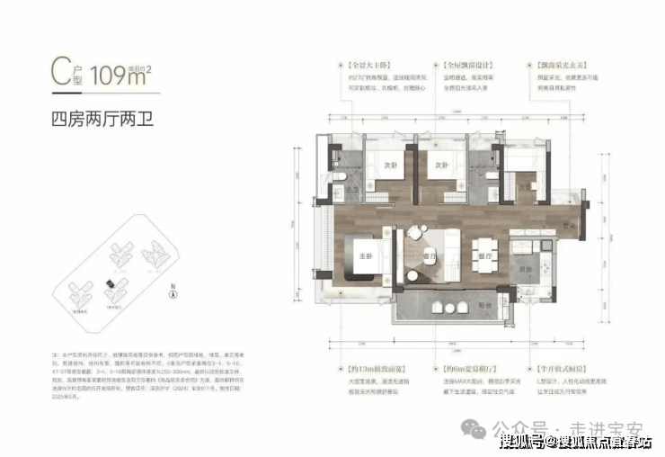 【产品面积】建面约95㎡/108㎡/109㎡/138㎡3-4房