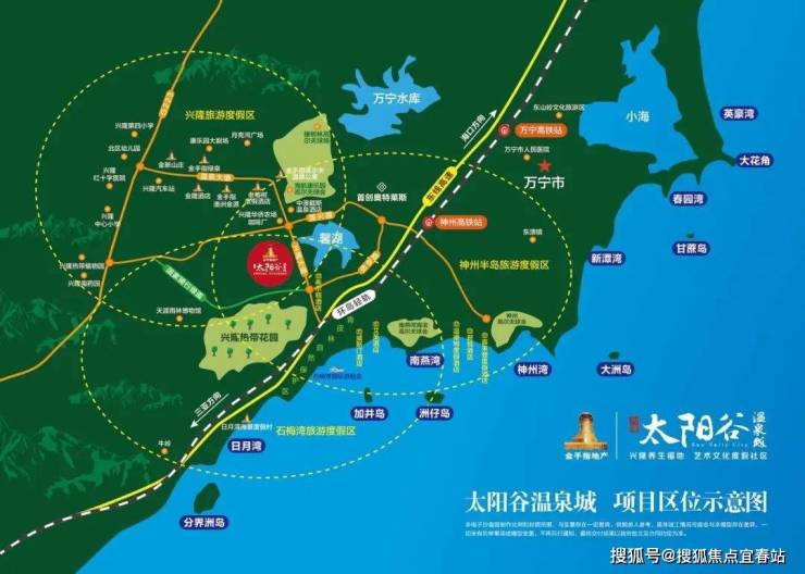 兴隆太阳谷温泉城位于海南东海岸中央——石梅湾畔、兴隆小镇之间,石梅湾热带雨林景区内,紧邻兴隆热带花园与热带植物园,为海南首创的艺术博物馆度假村式社区,是集雨林洋房、湖畔别墅、艺术博物馆酒店、养生会所、风情商业街为为一体,涵盖“休闲、度假、养生”多功能的大型综合度假社区。