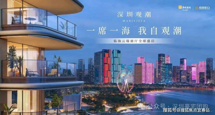 :东南向无遮挡,直面前海湾 + 欢乐港湾摩天轮 + 前海天际线,部分户型270° 环幕海景。