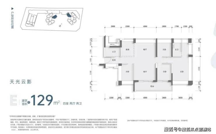 建面约129㎡四房两卫户型:LDKB一体化设计,创新性打造环绕式飘窗,实现360°全景采光通风;约6.8m阔绰瞰景阳台;宽敞客厅,可容纳一家人兴趣空间的日常功能。