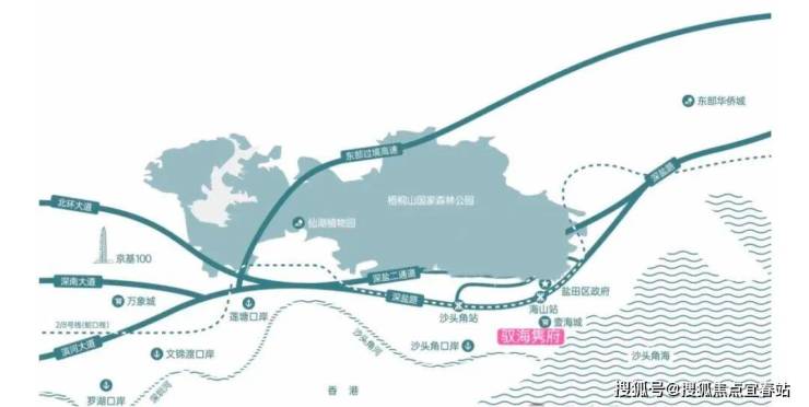 2站达罗湖,10站抵福田 CBD;深盐路作为封面标杆,直连深南大道、滨河大道,约30 分钟贯通福田、南山;沿海高速、坪盐通道等快速路网织就无界出行网。项目更有沙头角、莲塘双口岸加持 —— 步行约 10 分钟通关香港,未来无界双城生活。