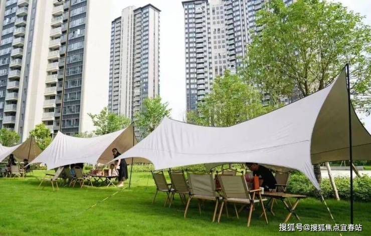 在此基础上,项目继续向生活蔓延,串联起诗意与生活气,打造多个景观亭、下沉式草坪庭院,可接待会客、露营野餐、露天影院等。