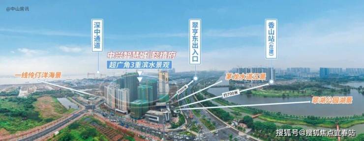 项目距深中通道翠亨东出入口约800米,紧邻建设中的南中城际香山站。南中城际香山站与项目楼下的翠湖公园组成“一湖一站”的TOD综合体。