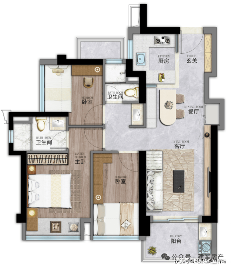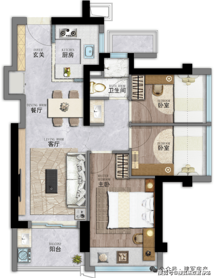 户型:建面约63-113㎡二房-四房