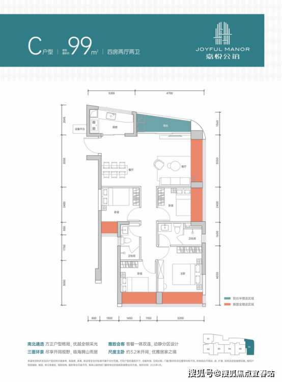 约99㎡户型做到四房,为成长型家庭预留无限可能,书房、游戏室、儿童房可自由切换。南北通透设计让鲜氧与清风四季常伴,约 3.2 米开间的奢阔套房主卧,带来极致舒适体验;三面环幕视野打造 270° 环幕客厅,在家就能享受山景 IMAX 视觉盛宴,开启交互式生活剧场。