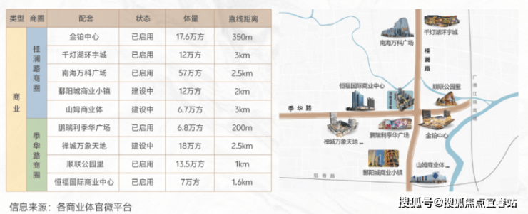 (2)商业配套堪称项目的一大亮点。一路之隔就是金铂中心、鹏瑞利广场两大购物广场,再远一点还有禅城山姆(在建),商业浓度相当高。项目还自带2000㎡社区商业,规划生鲜超市、精品咖啡馆等业态,满足业主日常所需。