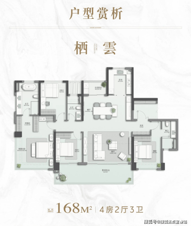 168㎡户型则配备双独立套房,主卫采用酒店式双台盆和浴缸设计,尤其适合三代同堂家庭。