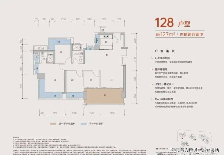 设计的是竖厅格局,进门入户玄关,客厅3.45米开间,LDKB一体化,S墙设计预留冰箱卡槽位,四开间朝南,动静分区,主卧+1个次卧270度大飘窗,客厅连接次卧出6米长大阳台,4个卧室分别做到了主卧16.4㎡/次卧11.2㎡/次卧7.84㎡/次卧6.25㎡(包含墙体飘窗),U型厨房,卫生间干湿分离,得房率约:106%(包含赠送),东南朝向。