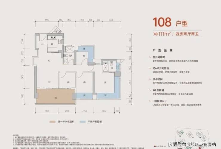 108㎡的4房2厅2卫A户型: