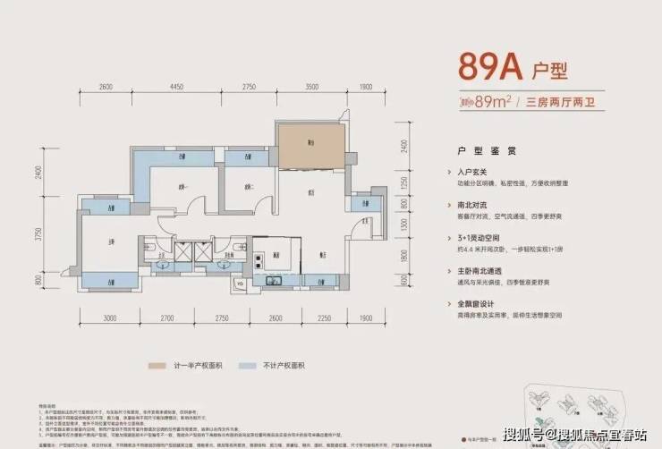 89㎡的3房2厅2卫E户型: