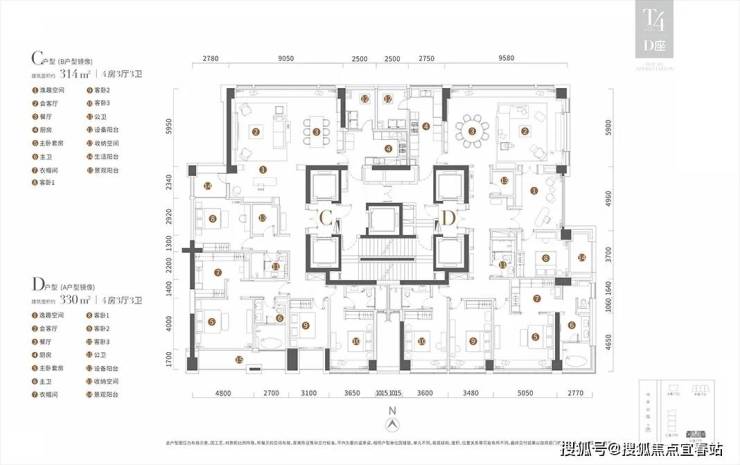 T4栋为314平和330平4房3厅3卫户型