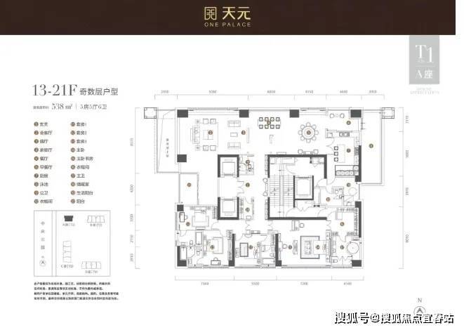 T1栋则是更加奢华的3梯1户(一层只有一户),533-540㎡