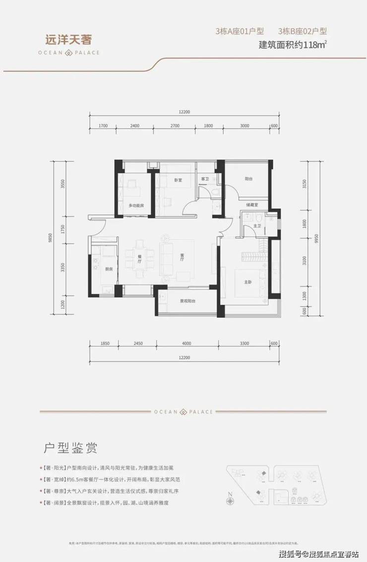主视野受限于楼梯结构比较一般,02相对好一些。而02户型背向景观能看西丽湖,01背向能看龙华天际线,都是次卧对开的景观。横厅设计。分别是3栋A座01户型西南朝向,3栋B座02西东南朝向,约有6.5米客餐厅一体化设计。布局比较开阔,全景飘窗,采光通风较好。