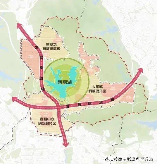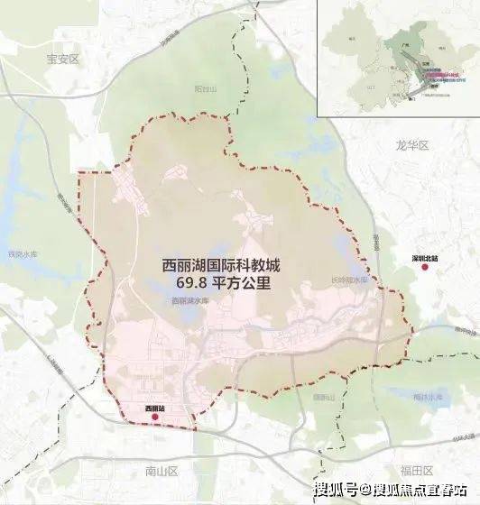 规划占地面积70平方公里,以麒麟山为屏,西丽湖为镜,被誉为大自然的天然氧吧。汇聚9所高校(清华,北大,哈工大,上海交大,天大,南科大,深大~~)国际一流学府的入驻,及7所诺贝尔研究实验室,未来将形成超80000师生其中不乏海龟博士等,从而带动高新企业超1100家,产值超3000亿的产业集群。