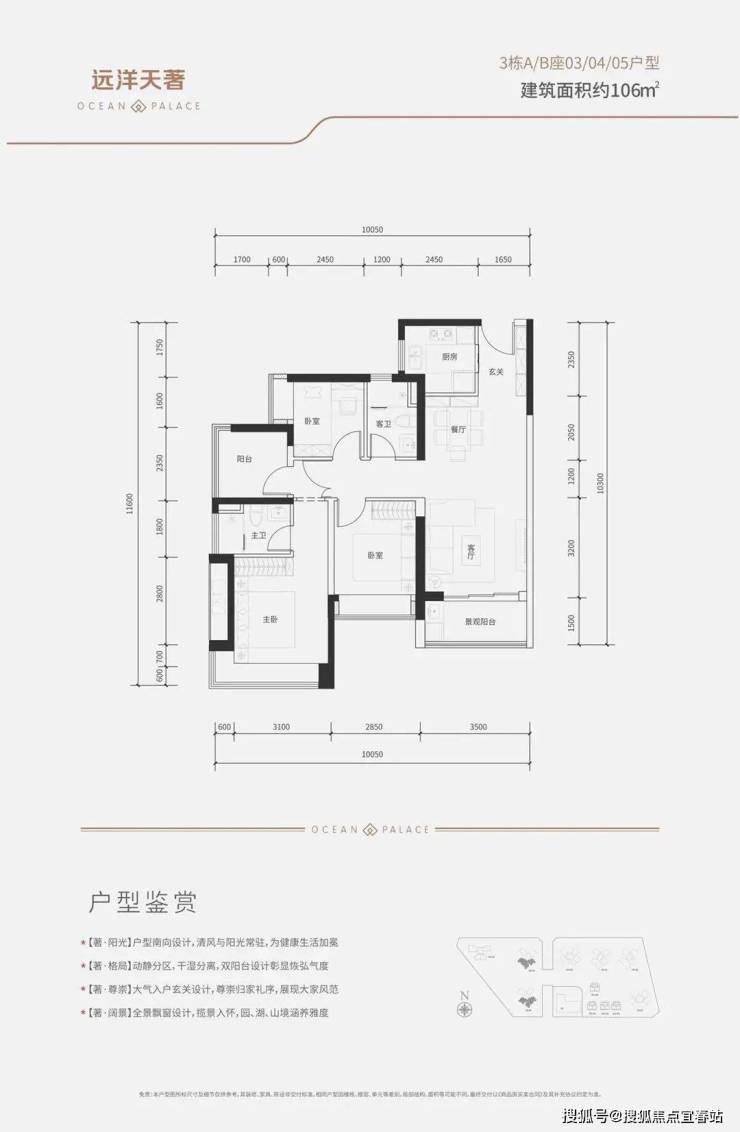 该户型是「远洋天著」性价比高的户型,800万出头就能上车四房作为主力户型分布在3栋A/B座03-04-05户型。有西南和东南两个朝向。户型和100平的大致一样。竖厅的设计,两个卧室和客厅是同一朝向。次卧的朝向相对来说差一点。第4个卧室面积最小,用来做书房或衣帽间比较合适