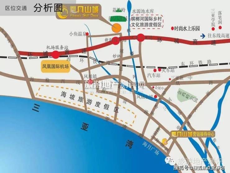 项目距离三亚市区只有6公里(金鸡岭路),到凤凰机场仅仅8公里,还有轻轨火车站和新汽车站都在5公里范围内,环城高速路一共有共有九个出入口直通三亚市区的主干道,在新联出入口边上即将规划一条直通凤凰路及三亚湾的主干道。