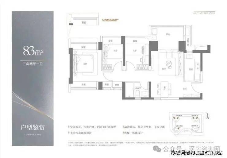 产品面积段:建面约83—113㎡三至四房;