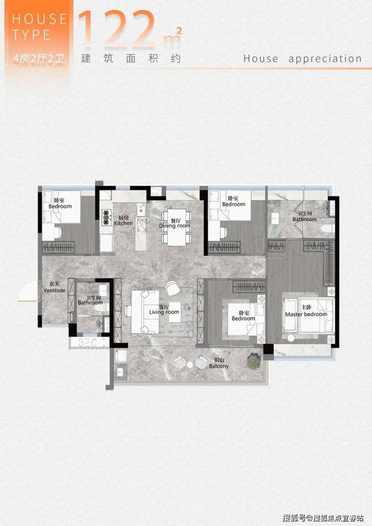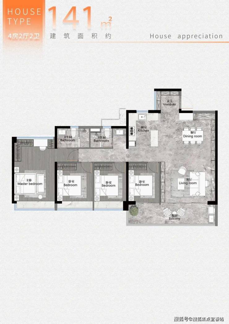 全新迭代超新规128㎡户型,四房两厅两卫 ;