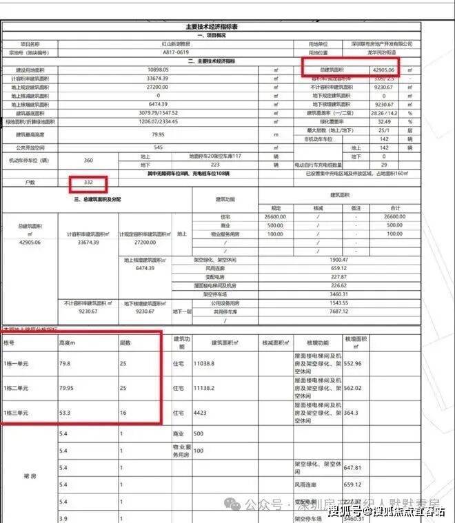 项目1栋1/2单元2梯6户,1栋3单元2梯4户设计,地下室有1层,规划360个车位,车位比1:1.08。