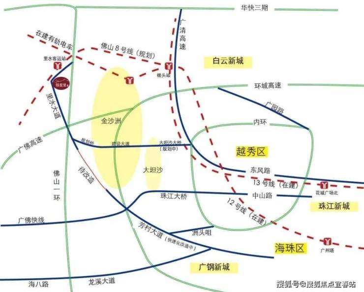 三地铁汇聚,多条公交线路无缝接驳广州地铁6号线浔峰岗站;佛山地铁5、6号线(规划中)、佛山地铁8号线(规划中),最近的站点离项目直线距离800m,8号线不仅与佛山地铁4号线、5号线、6号线相接,而且还将和广州地铁的12号线和13号线牵手对接,无缝连接广佛两地。