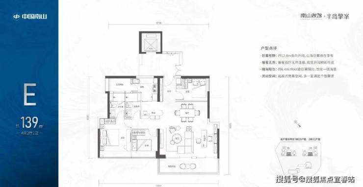 【139㎡的4房2厅2卫】1栋03/2栋02高区户型,电梯入户送独立公区,竖厅类双龙抱珠格局,四开间朝南,主卧大套间设计,有1个多功能间可以做书房,6.4米长观景大阳台,L型厨房带1个生活阳台,卫生间干湿分离,得房率:72.07%(不含赠送),西南朝向;