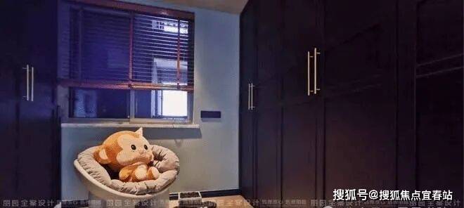 主卧为套房设计,将衣帽间包进主卧室,满足屋主的使用偏好,衣帽间衣帽间以黑色为主色调,沉稳内敛,恰到好处的凸显出空间的精致感。