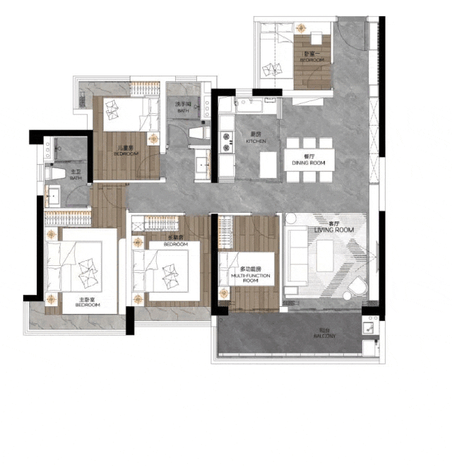 西关都荟主推的户型包括89㎡至142㎡的四房和五房设计,其中以四房户型为主,适合改善型家庭。项目最大的亮点是其100%使用率的户型设计,在同等面积下能够提供更多实用空间,且布局合理。每个房间的采光和通风条件都得到了充分考虑,尤其是大面宽的景观阳台,进一步提升了居住舒适度。对于有较高居住品质要求的家庭来说,这些户型无疑是非常具有吸引力的选择。
