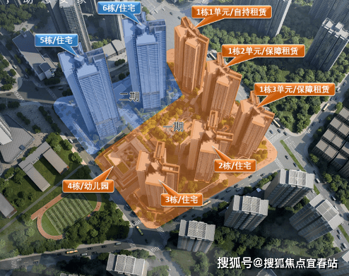 项目分两期报建,其中一期1栋1单元为开发商自持租赁租赁住宅楼,1栋2-3单元为移交政府保障租赁住宅楼,2栋和3栋为普通商品住宅楼;二期5栋和6栋为普通商品住宅楼