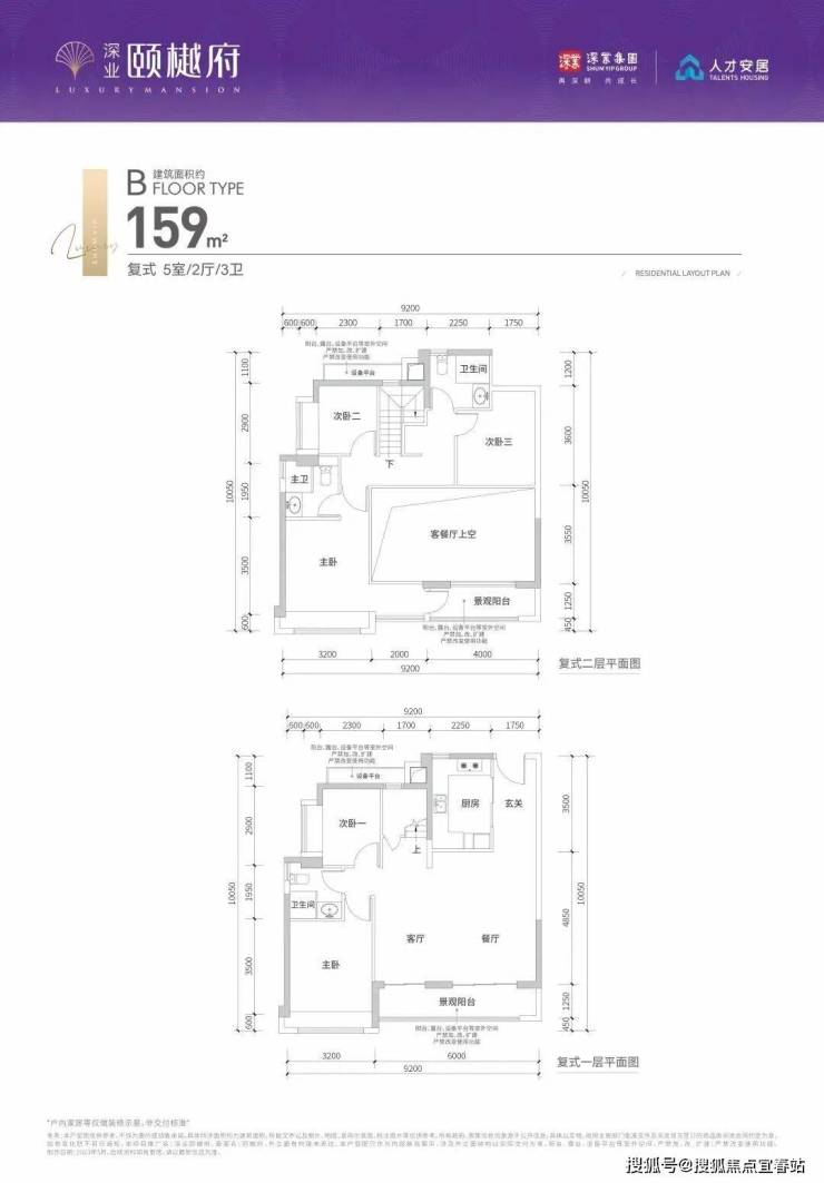 龙华红山终选:深业颐樾府由7栋高层和超高层塔楼围合而成,配有一所6班制幼儿园和约2000㎡商业。项目分两期开发,其中2、3、5、6栋为商品房,规划总户数约1410户(可售住宅870户),总层高32-45层,梯户比为2梯6户/3梯6户,实用率为77.3%~80.9%(不含半个阳台及所有飘窗)。