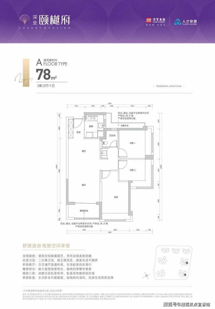 项目钜献建面约78-125m²颐系升级新品,主流三至四房户型,格局方正采光通透,宽景阳台揽胜云端,栖居一府天地,私享一方静界。