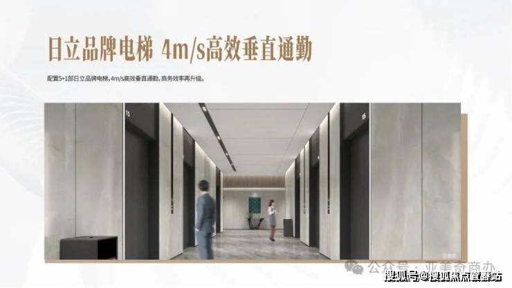5+1台日立品牌电梯,4m/s高效垂直通勤!满足大规模人流同行,助力企业高效办公