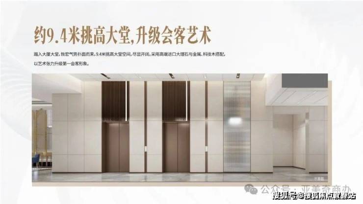 首层9.4米挑空大堂,以现代轻奢商务风格塑造高端、典雅的企业商务形象