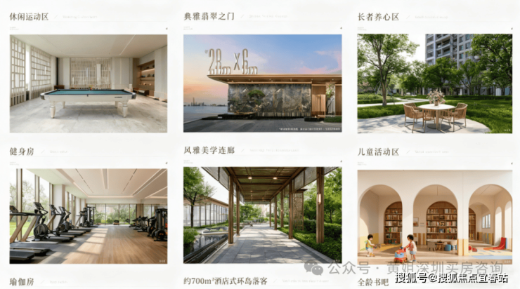 社区内规划双泳池(其中成人泳池有标准泳道)、健身房、私宴厅瑜伽室、全龄书吧等多元空间,成为长者的茶室、孩子的乐园、书迷的小角落、运动达人的主场等高端配套。建筑之间设风雨连廊,提升生活便利性。