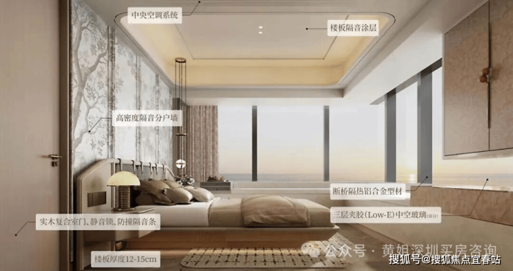 「天健·湾TIME」外立面采用水晶灰蓝玻璃+米白色调铝板,部分玻璃为三层LOW-E玻璃,与深圳湾售价20万+/平的恒裕深圳湾等豪宅同标。材质安全、隔音效果更好,大大的提升了景观视野开阔性。