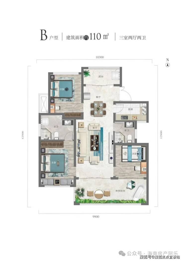 B 户型110㎡三室两厅两卫